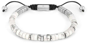 Nm 027925/085 Браслет INSTINCT "БЕЛАЯ БИРЮЗА" размер 15-21 см, синтетический шнур, сталь, камни