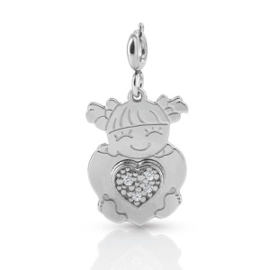 Nm 026222/011 Подвеска SYMPHONY "ДЕВОЧКА" размер 2,2*1,5 см, сталь, серебро 925°, цирконы