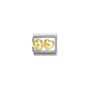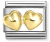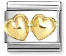 Nm 030116/23 Звено CLASSIC символ "ДВОЙНОЕ ОБЪЕМНОЕ СЕРДЦЕ" сталь/золото 750